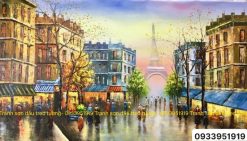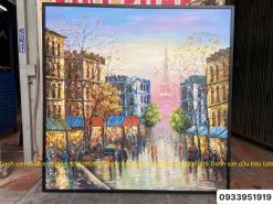 Tranh treo tường đường phố châu âu, tranh sơn dầu phong cảnh châu âu