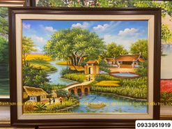 Tranh vẽ phong cảnh làng quê, tranh sơn dầu làng quê