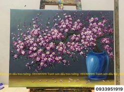 Tranh hoa đào mùa xuân, tranh sơn dầu hoa đào mùa xuân