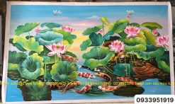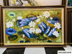 Tranh hoa sen treo tường đẹp và ý nghĩa, tranh sơn dầu hoa sen phong thủy