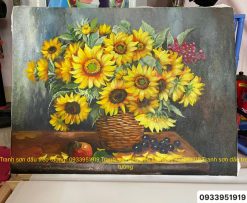Tranh Hoa Hướng Dương , tranh sơn dầu tĩnh vật hoa Hướng Dương đẹp