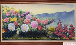 Tranh hoa mẫu đơn ý nghĩa phong thủy, tranh sơn dầu hoa mẫu đơn