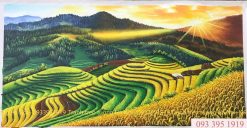 Tranh phong cảnh đồng quê Việt Nam, tranh sơn dầu mùa thu hoạch lúa đẹp